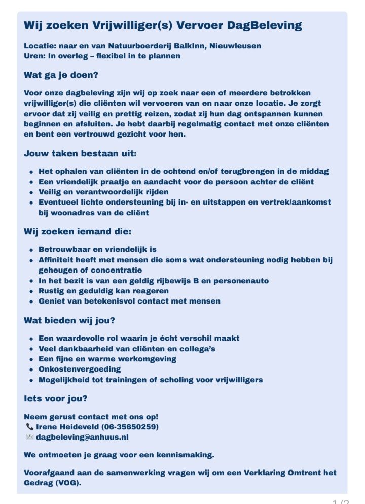 Wij zoeken een chauffeur voor het brengen en halen van deelnemers DagBeleving