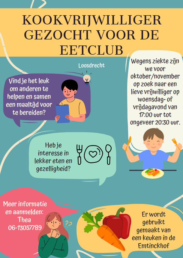 Kom jij koken voor mensen met dementie? Wij hebben hulp nodig op de woensdag en of vrijdagavond van 17.00 - 20.00.