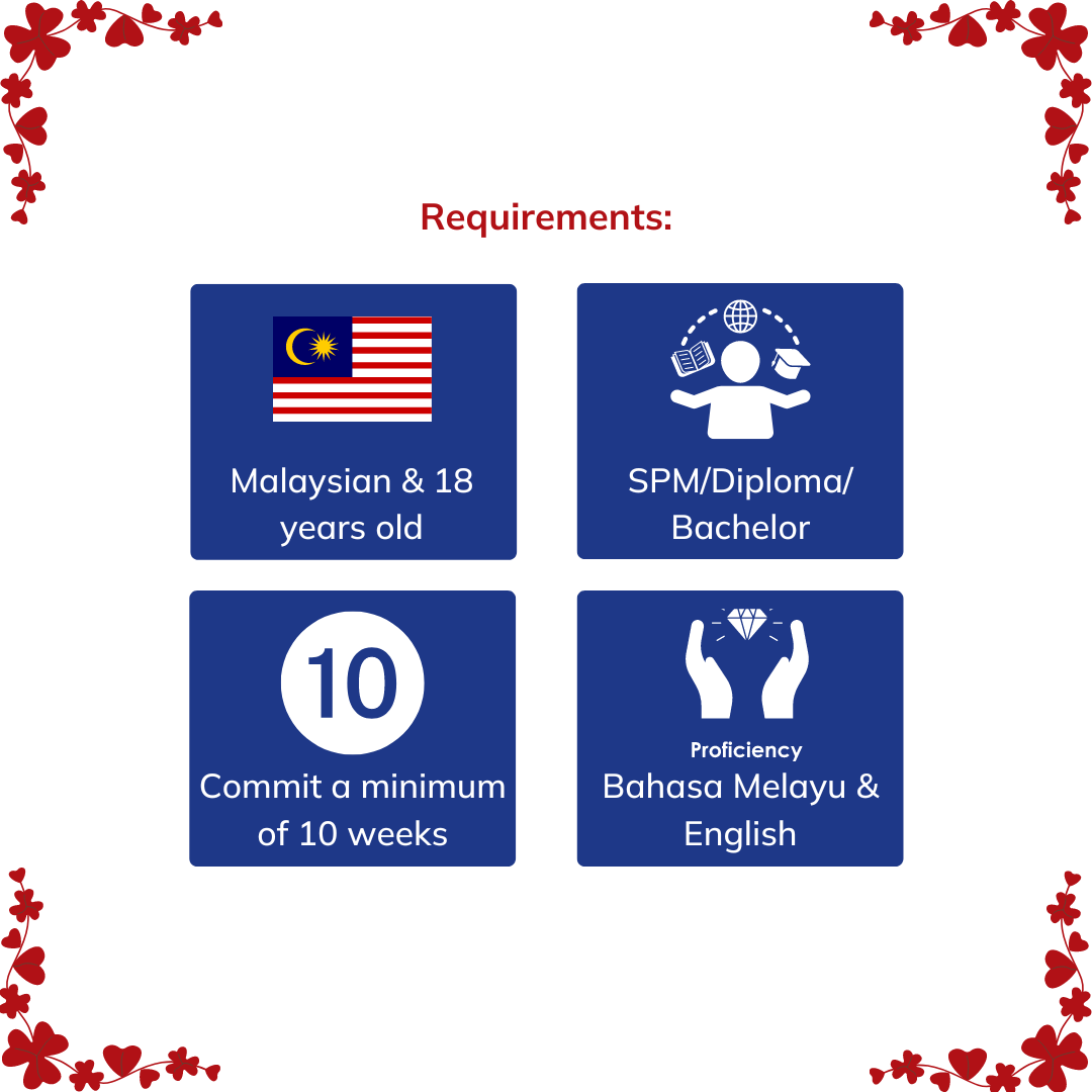 - Compulsory Onboarding: Start strong with a training session where Teach For Malaysia officers will equip you with the tools and resources you need.